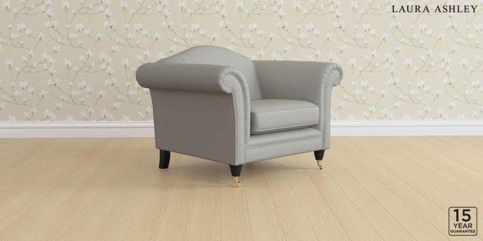 6.12.1 Buy Gloucester by Laura Ashley Armchair Edwin Herringbone Pale Steel Grey Low Brass Castor - Black from the Laura Ashley online shop Click here to use our website with more accessibility support, for example screen readers