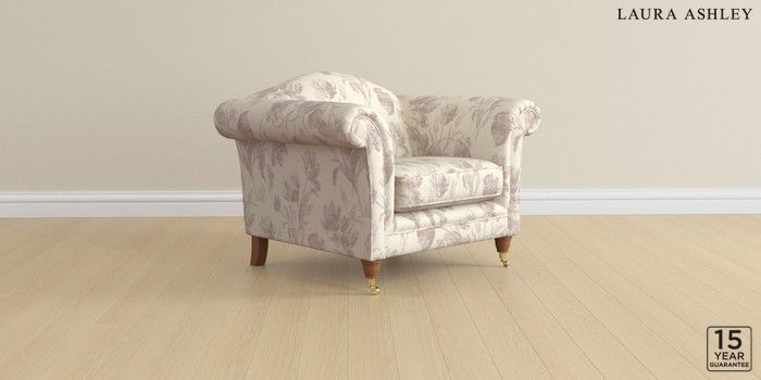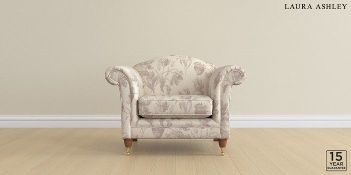 6.12.13 Buy Gloucester by Laura Ashley Armchair Gosford Weave Dusky Plum Purple Low Brass Castor - Teak from the Laura Ashley online shop Click here to use our website with more accessibility support, for example screen readers