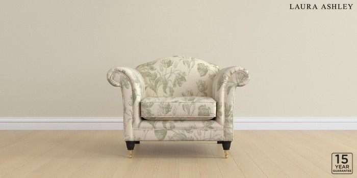 6.12.1 Buy Gloucester by Laura Ashley Armchair Gosford Weave Sage Green Low Brass Castor - Black from the Laura Ashley online shop Click here to use our website with more accessibility support, for example screen readers