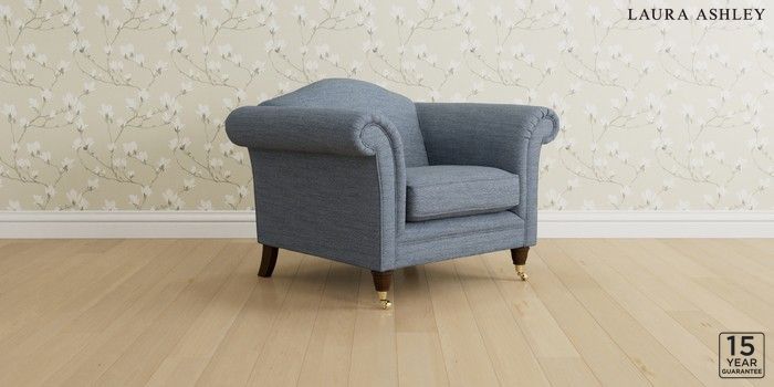 6.12.1 Buy Gloucester by Laura Ashley Armchair Harley Seaspray Blue Low Brass Castor - Chestnut from the Laura Ashley online shop Click here to use our website with more accessibility support, for example screen readers
