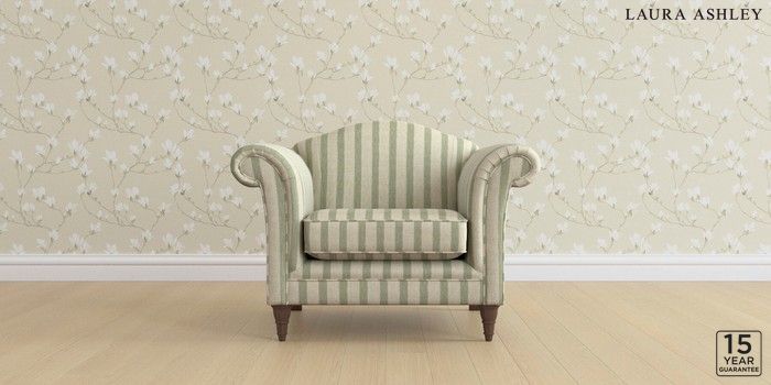 6.12.13 Buy Gloucester by Laura Ashley Armchair Kinsham Stripe Hedgerow Green Low Turned - Chestnut from the Laura Ashley online shop Click here to use our website with more accessibility support, for example screen readers