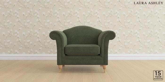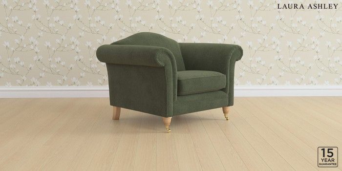 6.12.1 Buy Gloucester by Laura Ashley Armchair Lundar Chenille Ivy Green Low Brass Castor - Light Oak from the Laura Ashley online shop Click here to use our website with more accessibility support, for example screen readers