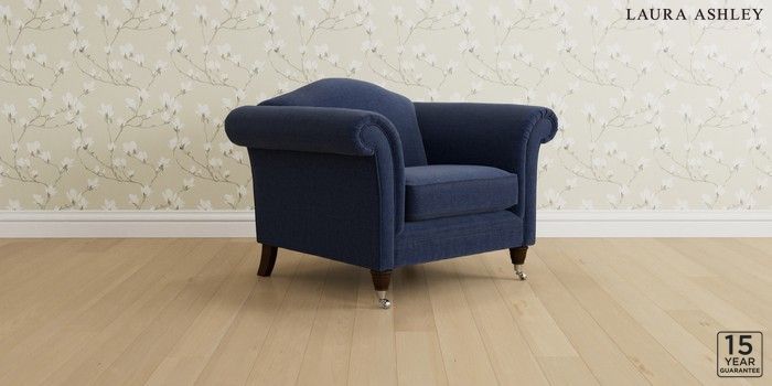 6.12.1 Buy Gloucester by Laura Ashley Armchair Nantmor Midnight Navy Low Chrome Castor - Chestnut from the Laura Ashley online shop Click here to use our website with more accessibility support, for example screen readers