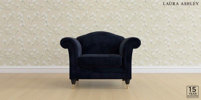 6.12.1 Buy Gloucester by Laura Ashley Armchair Orla Midnight Navy Low Brass Castor - Black from the Laura Ashley online shop Click here to use our website with more accessibility support, for example screen readers