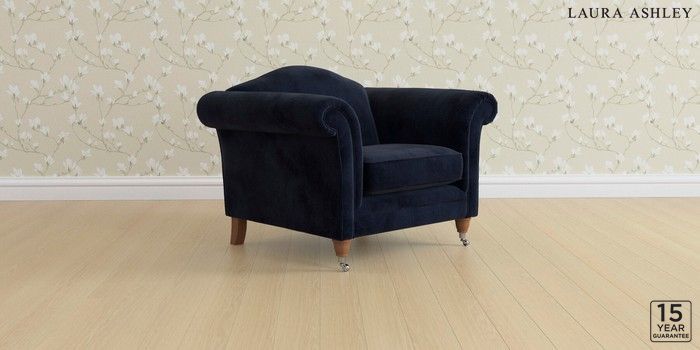 6.12.13 Buy Gloucester by Laura Ashley Armchair Orla Midnight Navy Low Chrome Castor - Teak from the Laura Ashley online shop Click here to use our website with more accessibility support, for example screen readers