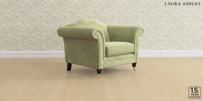 6.12.1 Buy Gloucester by Laura Ashley Armchair Orla Pale Hedgerow Green Low Brass Castor - Black from the Laura Ashley online shop Click here to use our website with more accessibility support, for example screen readers