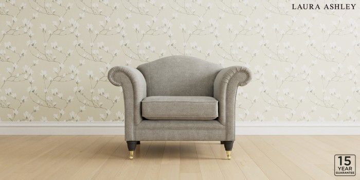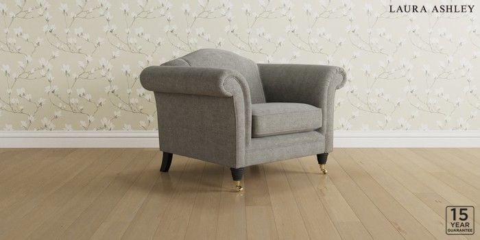 6.12.1 Buy Gloucester by Laura Ashley Armchair Orla Pale Steel Grey Low Brass Castor - Black from the Laura Ashley online shop Click here to use our website with more accessibility support, for example screen readers