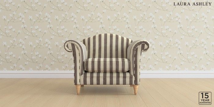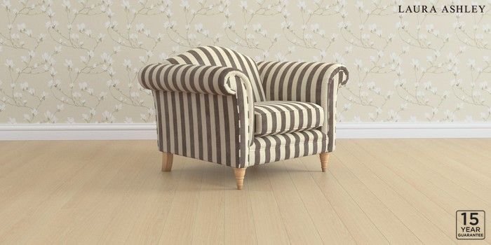 6.12.13 Buy Gloucester by Laura Ashley Armchair Orla Stripe Dark Truffle Natural Low Turned - Light Oak from the Laura Ashley online shop Click here to use our website with more accessibility support, for example screen readers