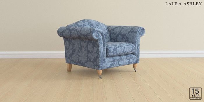 6.12.13 Buy Gloucester by Laura Ashley Armchair Tamara Dusky Seaspray Blue Low Chrome Castor - Light Oak from the Laura Ashley online shop Click here to use our website with more accessibility support, for example screen readers