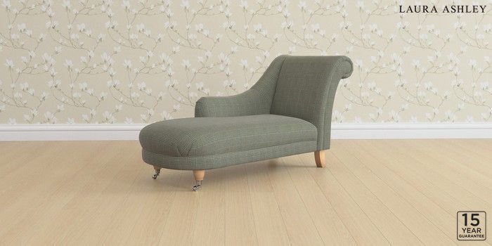 6.12.13 Buy Gloucester by Laura Ashley Chaise Longue Left Hand Birchgrove Check Olive Green Low Chrome Castor - Light Oak from the Laura Ashley online shop Click here to use our website with more accessibility support, for example screen readers
