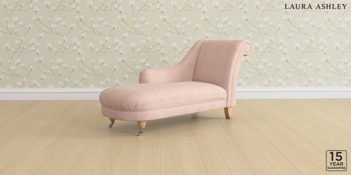 6.12.1 Buy Gloucester by Laura Ashley Chaise Longue Left Hand Edwin Chenille Blush Pink Low Chrome Castor - Light Oak from the Laura Ashley online shop Click here to use our website with more accessibility support, for example screen readers