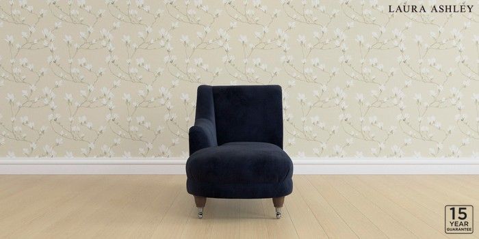 6.12.1 Buy Gloucester by Laura Ashley Chaise Longue Left Hand Orla Midnight Navy Low Chrome Castor - Chestnut from the Laura Ashley online shop Click here to use our website with more accessibility support, for example screen readers