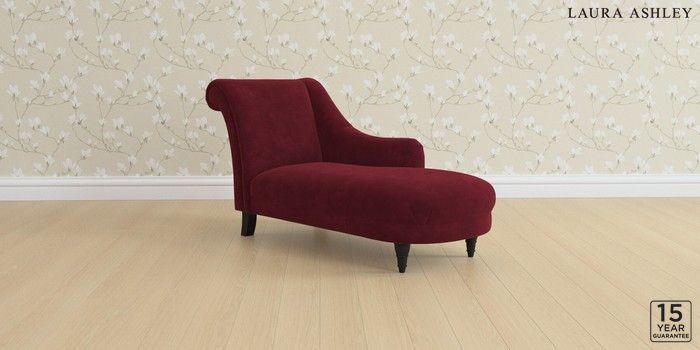 6.12.13 Buy Gloucester by Laura Ashley Chaise Longue Right Hand Alwyn Velvet Burgundy Red Low Turned - Black from the Laura Ashley online shop Click here to use our website with more accessibility support, for example screen readers