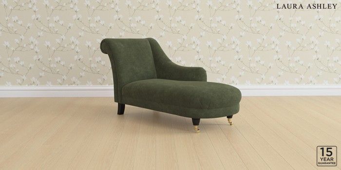7.0.3 Buy Gloucester by Laura Ashley Chaise Longue Right Hand Alwyn Velvet Ivy Green Low Brass Castor - Black from the Laura Ashley online shop Click here to use our website with more accessibility support, for example screen readers
