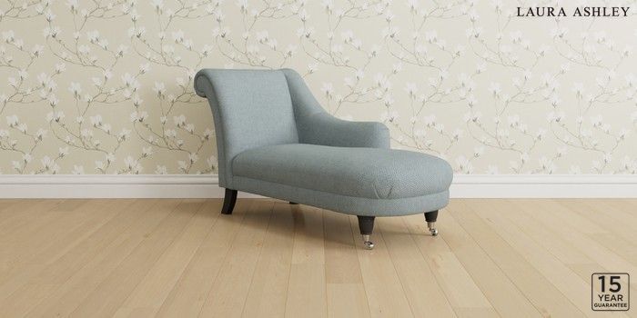 6.12.1 Buy Gloucester by Laura Ashley Chaise Longue Right Hand Anneliese Seaspray Blue Low Chrome Castor - Black from the Laura Ashley online shop Click here to use our website with more accessibility support, for example screen readers