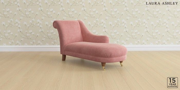 6.12.1 Buy Gloucester by Laura Ashley Chaise Longue Right Hand Bainton Old Rose Pink Low Brass Castor - Teak from the Laura Ashley online shop Click here to use our website with more accessibility support, for example screen readers