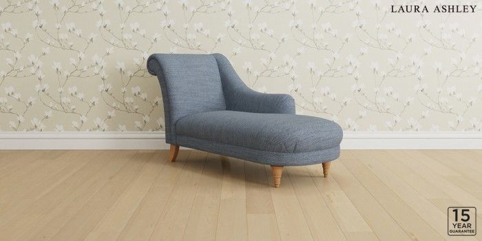 6.12.1 Buy Gloucester by Laura Ashley Chaise Longue Right Hand Harley Seaspray Blue Low Turned - Light Oak from the Laura Ashley online shop Click here to use our website with more accessibility support, for example screen readers