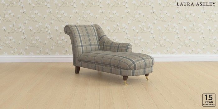 6.12.1 Buy Gloucester by Laura Ashley Chaise Longue Right Hand Longstowe Check French Grey Low Brass Castor - Chestnut from the Laura Ashley online shop Click here to use our website with more accessibility support, for example screen readers