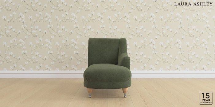 6.12.13 Buy Gloucester by Laura Ashley Chaise Longue Right Hand Lundar Chenille Ivy Green Low Chrome Castor - Light Oak from the Laura Ashley online shop Click here to use our website with more accessibility support, for example screen readers