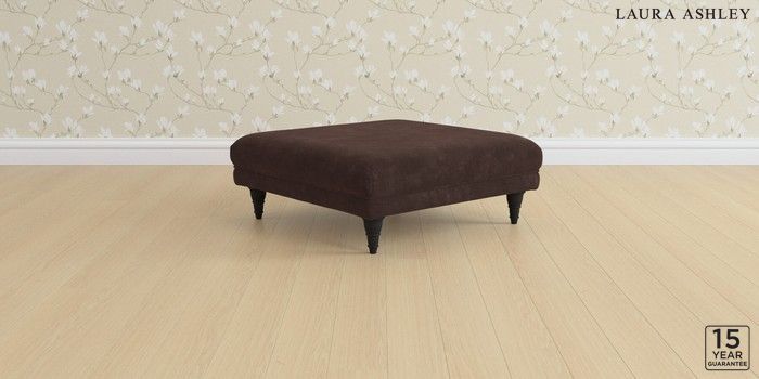 6.12.1 Buy Gloucester by Laura Ashley Extra Large Footstool Alwyn Velvet Chocolate Brown Low Turned - Black from the Laura Ashley online shop Click here to use our website with more accessibility support, for example screen readers