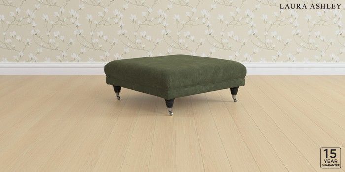 6.12.13 Buy Gloucester by Laura Ashley Extra Large Footstool Alwyn Velvet Ivy Green Low Chrome Castor - Black from the Laura Ashley online shop Click here to use our website with more accessibility support, for example screen readers