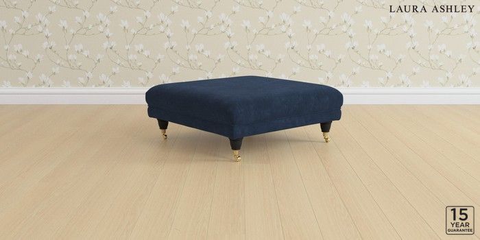 6.12.1 Buy Gloucester by Laura Ashley Extra Large Footstool Alwyn Velvet Midnight Navy Low Brass Castor - Black from the Laura Ashley online shop Click here to use our website with more accessibility support, for example screen readers