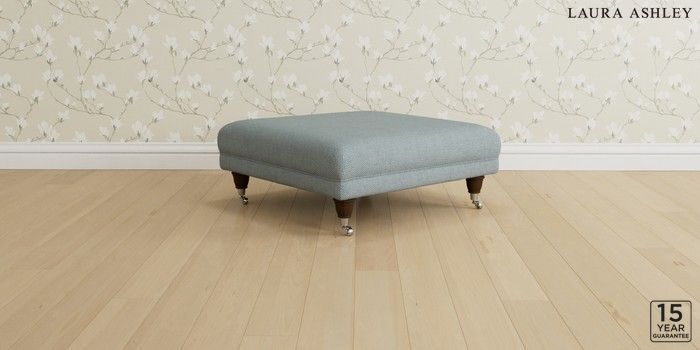 6.12.1 Buy Gloucester by Laura Ashley Extra Large Footstool Anneliese Seaspray Blue Low Brass Castor - Chestnut from the Laura Ashley online shop Click here to use our website with more accessibility support, for example screen readers