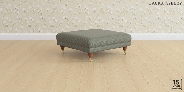 6.12.13 Buy Gloucester by Laura Ashley Extra Large Footstool Birchgrove Check Olive Green Low Brass Castor - Teak from the Laura Ashley online shop Click here to use our website with more accessibility support, for example screen readers
