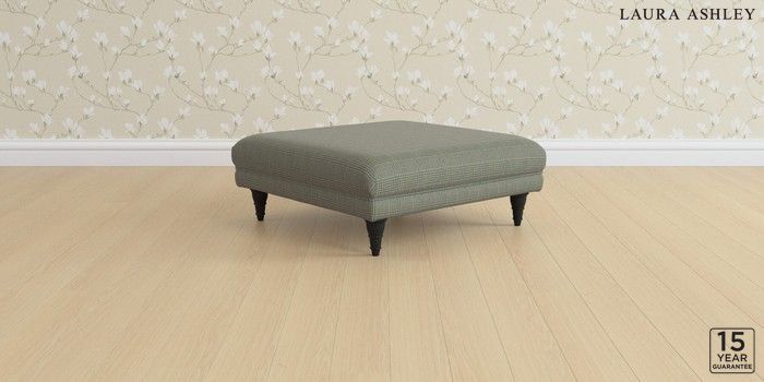 6.12.13 Buy Gloucester by Laura Ashley Extra Large Footstool Birchgrove Check Olive Green Low Turned - Black from the Laura Ashley online shop Click here to use our website with more accessibility support, for example screen readers