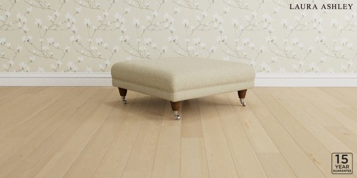 6.12.1 Buy Gloucester by Laura Ashley Extra Large Footstool Harley Natural Low Brass Castor - Teak from the Laura Ashley online shop Click here to use our website with more accessibility support, for example screen readers