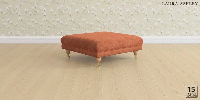 6.12.1 Buy Gloucester by Laura Ashley Extra Large Footstool Nantmor Rust Orange Low Brass Castor - Light Oak from the Laura Ashley online shop Click here to use our website with more accessibility support, for example screen readers