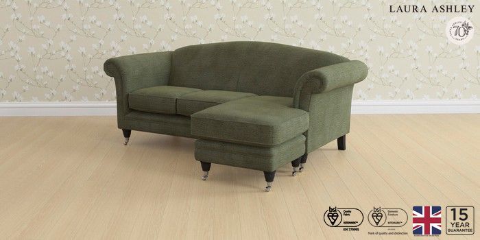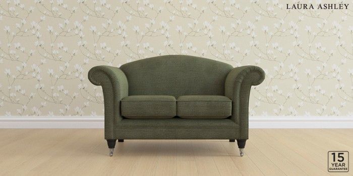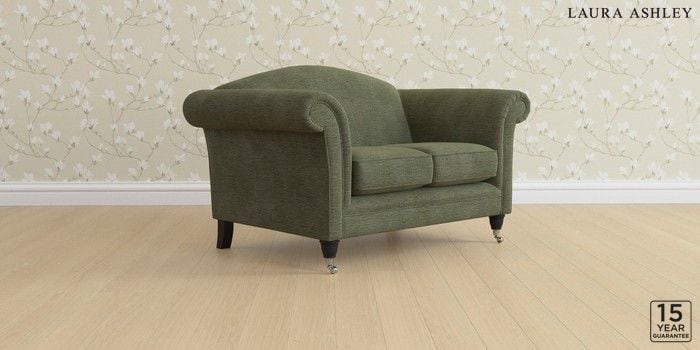 6.12.1 Buy Gloucester by Laura Ashley 2 Seater Small Sofa Edwin Chenille Hedgerow Green Low Chrome Castor - Black from the Laura Ashley online shop Click here to use our website with more accessibility support, for example screen readers