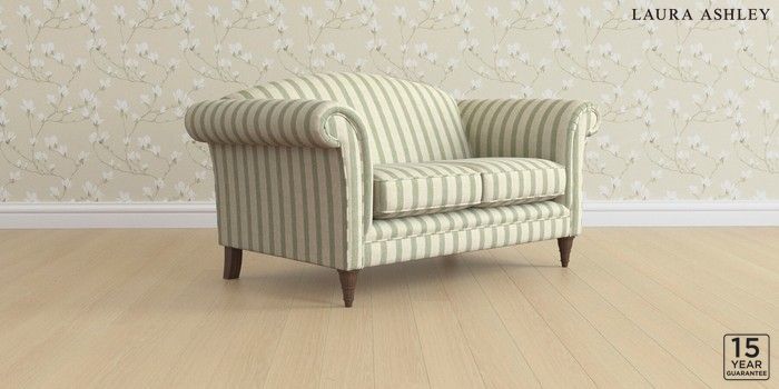 6.12.1 Buy Gloucester by Laura Ashley 2 Seater Sofa Kinsham Stripe Hedgerow Green Low Turned - Chestnut from the Laura Ashley online shop Click here to use our website with more accessibility support, for example screen readers