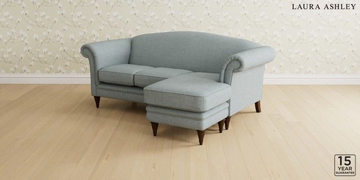 6.12.1 Buy Gloucester by Laura Ashley Medium Sofa Chaise - Universal Anneliese Seaspray Blue Low Turned - Chestnut from the Laura Ashley online shop Click here to use our website with more accessibility support, for example screen readers