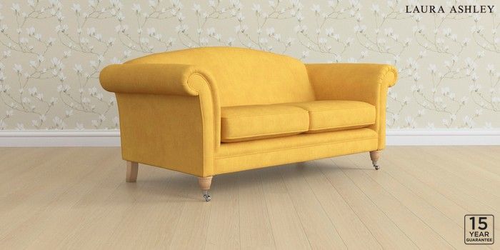 6.12.1 Buy Gloucester by Laura Ashley 3 Seater Small Sofa Bainton Ochre Yellow Low Chrome Castor - Light Oak from the Laura Ashley online shop Click here to use our website with more accessibility support, for example screen readers