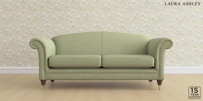 6.12.1 Buy Gloucester by Laura Ashley 3 Seater Sofa Kinsham Hedgerow Green Low Brass Castor - Chestnut from the Laura Ashley online shop Click here to use our website with more accessibility support, for example screen readers