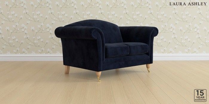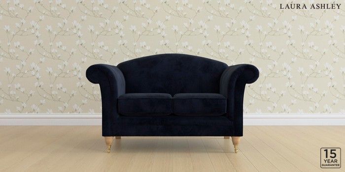 6.12.1 Buy Gloucester by Laura Ashley 2 Seater Small Sofa Orla Midnight Navy Low Brass Castor - Light Oak from the Laura Ashley online shop Click here to use our website with more accessibility support, for example screen readers