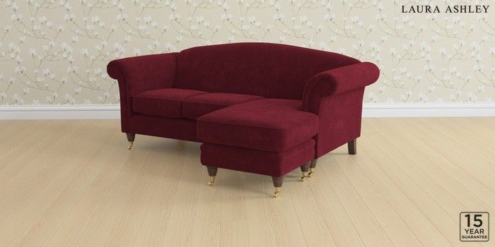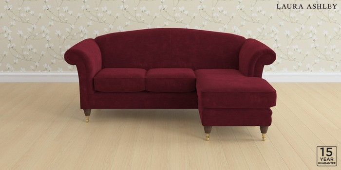 6.12.1 Buy Gloucester by Laura Ashley Medium Sofa Chaise - Universal Alwyn Velvet Burgundy Red Low Brass Castor - Chestnut from the Laura Ashley online shop Click here to use our website with more accessibility support, for example screen readers