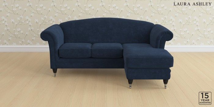 6.12.1 Buy Gloucester by Laura Ashley Medium Sofa Chaise - Universal Alwyn Velvet Midnight Navy Low Chrome Castor - Black from the Laura Ashley online shop Click here to use our website with more accessibility support, for example screen readers