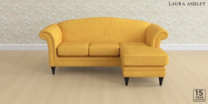 6.12.1 Buy Gloucester by Laura Ashley Medium Sofa Chaise - Universal Bainton Ochre Yellow Low Turned - Black from the Laura Ashley online shop Click here to use our website with more accessibility support, for example screen readers