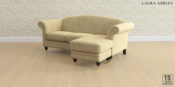 6.12.1 Buy Gloucester by Laura Ashley Medium Sofa Chaise - Universal Edwin Chenille Truffle Natural Low Brass Castor - Black from the Laura Ashley online shop Click here to use our website with more accessibility support, for example screen readers