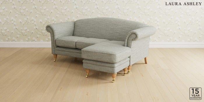 6.12.1 Buy Gloucester by Laura Ashley Medium Sofa Chaise - Universal Harley Dove Grey Low Brass Castor - Light Oak from the Laura Ashley online shop Click here to use our website with more accessibility support, for example screen readers