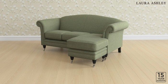 6.12.1 Buy Gloucester by Laura Ashley Medium Sofa Chaise - Universal Harley Moss Green Low Chrome Castor - Black from the Laura Ashley online shop Click here to use our website with more accessibility support, for example screen readers