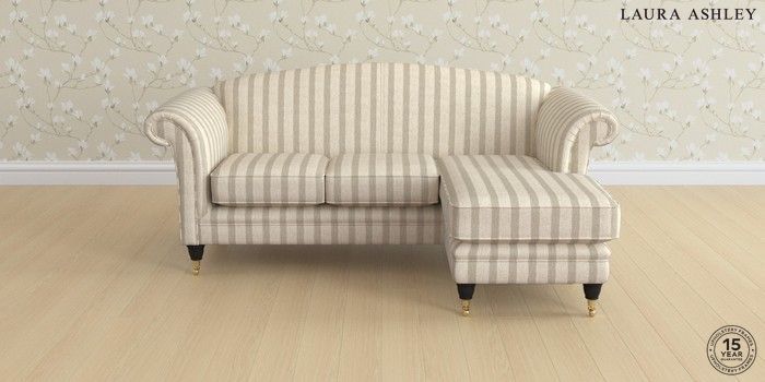 6.12.1 Buy Gloucester by Laura Ashley Medium Sofa Chaise - Universal Kinsham Stripe Natural Low Brass Castor - Black from the Laura Ashley online shop Click here to use our website with more accessibility support, for example screen readers