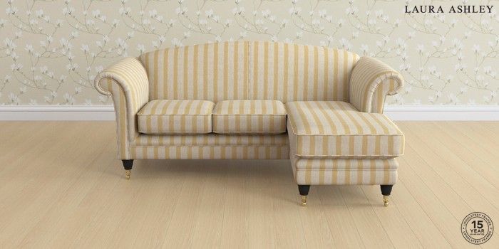 7.0.3 Buy Gloucester by Laura Ashley Medium Sofa Chaise - Universal Kinsham Stripe Ochre Yellow Low Brass Castor - Black from the Laura Ashley online shop Click here to use our website with more accessibility support, for example screen readers