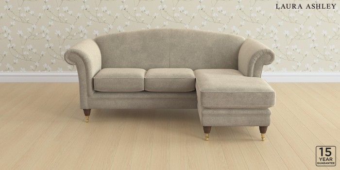 6.12.13 Buy Gloucester by Laura Ashley Medium Sofa Chaise - Universal Lundar Chenille Truffle Natural Low Brass Castor - Chestnut from the Laura Ashley online shop Click here to use our website with more accessibility support, for example screen readers