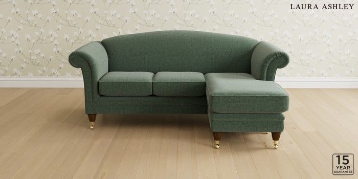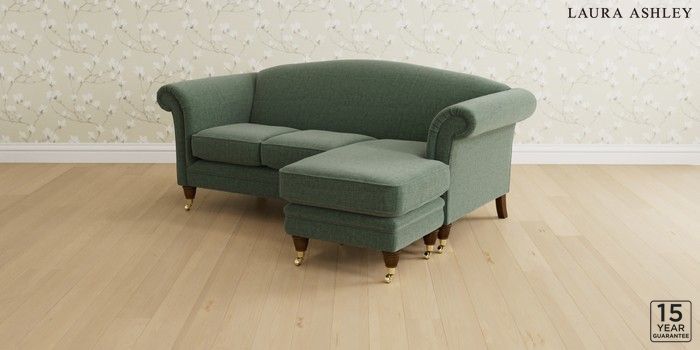 6.12.1 Buy Gloucester by Laura Ashley Medium Sofa Chaise - Universal Nantmor Fern Green Low Brass Castor - Teak from the Laura Ashley online shop Click here to use our website with more accessibility support, for example screen readers