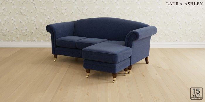 6.12.1 Buy Gloucester by Laura Ashley Medium Sofa Chaise - Universal Nantmor Midnight Navy Low Brass Castor - Teak from the Laura Ashley online shop Click here to use our website with more accessibility support, for example screen readers