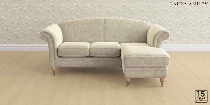 6.12.13 Buy Gloucester by Laura Ashley Medium Sofa Chaise - Universal Nantmor Truffle Natural Low Chrome Castor - Light Oak from the Laura Ashley online shop Click here to use our website with more accessibility support, for example screen readers