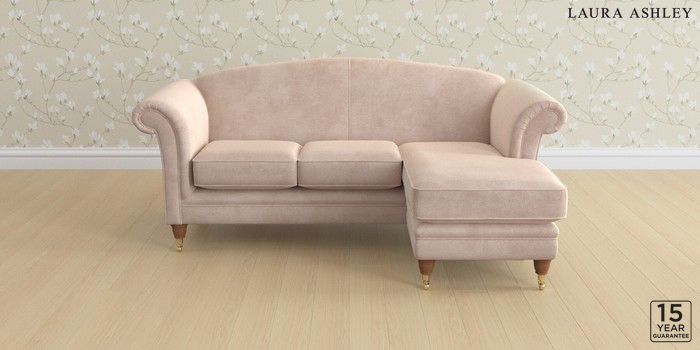 6.12.1 Buy Gloucester by Laura Ashley Medium Sofa Chaise - Universal Orla Chalk Pink Low Brass Castor - Teak from the Laura Ashley online shop Click here to use our website with more accessibility support, for example screen readers